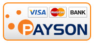 Betalning sker enkelt och säkert med vår samarbetspartner Payson. Även om du inte har ett Paysonkonto sedan tidigare kan du snabbt göra transaktionen via Payson. Payson samarbetar med  VISA, MasterCard samt alla svenska banker som erbjuder direktbetalningar; Swedbank, Handelsbanken, SEB och Nordea.